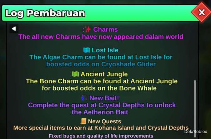 Game virtual memancing yang ada di Roblox, Fish It telah mendapatkan update beberapa waktu yang lalu.