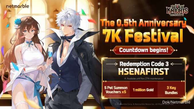 Netmarble masih setia bagi-bagi kode redeem terbaru dalam rangka event The 0.5 Anniversary 7K Festival melalui akun media sosial resminya.