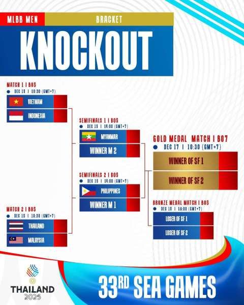 Mengutip laman media sosial Mobile Legends Esports, berikut ini adalah detail jadwal pertandingan SEA Games 2025 Knockout Stage hari ini.