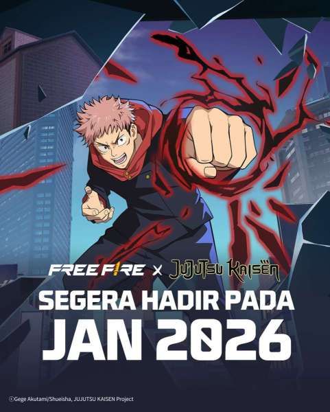 KONTAN.CO.ID - Kolaborasi Free Fire X Jujutsu Kaisen resmi diumumkan! Akan hadir pada awal tahun 2026.