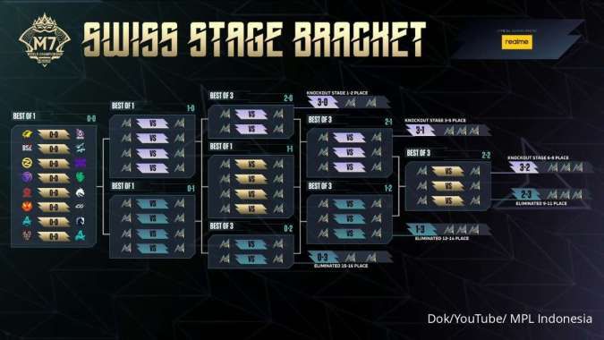 Bersiaplah untuk menyambut babak Swiss Stage di turnamen M7 MLBB. Berikut ini adalah daftar tim yang lolos dan bracket pertandingan.