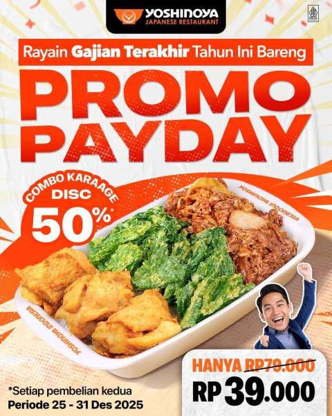 Di bulan Desember 2025 ini juga ada promo payday atau promo gajian untuk menu lezat di Yoshinoya.
