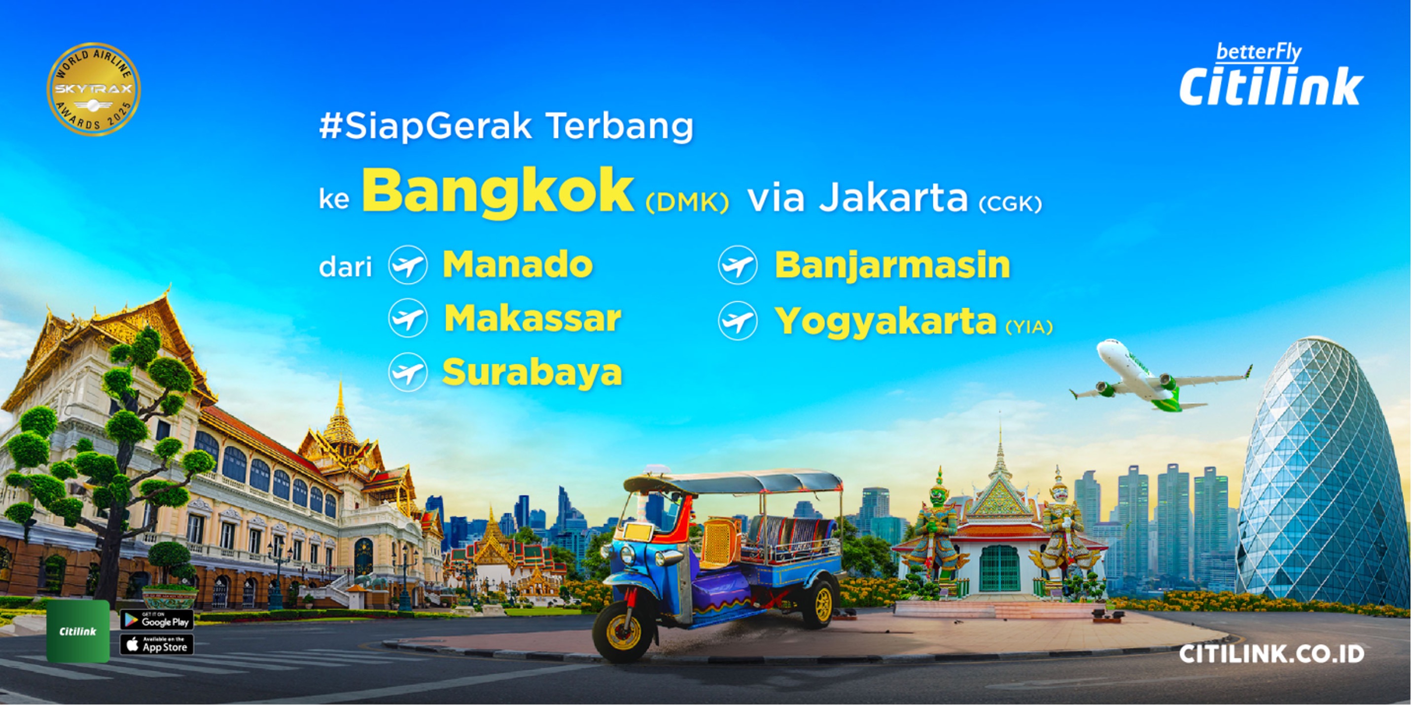 Setiap sudut Bangkok menawarkan inspirasi dan setiap temuan bisa jadi cerita baru di lemari pakaianmu. Yuk terbang dan belanja ke Bangkok! Citilink #SiapGerak terbang ke Bangkok setiap hari mulai 12 Desember 2025 dari Manado, Makassar, Surabaya, Banjarmasin, dan Yogyakarta (YIA) via Jakarta (CGK). Pesan tiketnya sekarang di website atau Aplikasi Citilink. Untuk informasi lebih lanjut klik di sini.